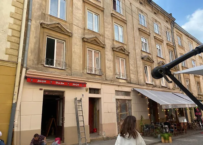 O apartamento Затишні Apartments in Центрі Міста fica a cerca de 10 minutos a pé de The Potocki Palace. O apartamento está localizado no distrito de Plosha Rynok. Os hóspedes podem gozar da cozinha em Baczewski Restaurant e Kryivka localizado a cerca de 200 metros de distância.